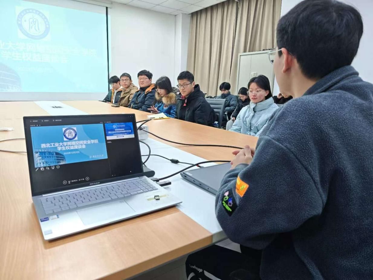 于2025年12月25日晚在学院楼245会议室顺利召开本学期第二次学生权益座谈会。校学生会权益服务中心代表、院学生会成员及各本科生班级学生代表共同参与,会议由学院学生权益服务中心负责人林宁主持。