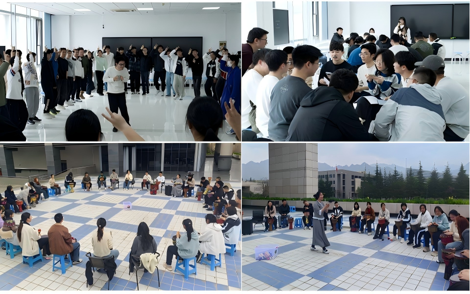 启动仪式结束后,两场特色团体心理辅导活动分别在启真楼416室和翱翔学生中心广场开展。来自西安国际医学中心的音乐治疗师团队带领学生体验艺术疗愈的魅力,现场互动热烈,反响积极。